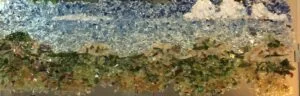 My mom’s 2nd cousin, therefore my 3rd, Cochran is a visual artist of distinction for these broken glass mosaics. A resident of Main Street Torrington, Wyoming, approximately seven miles from the Nebraska border, she has shown at the Scotts Bluff, Nebraska-based Western Nebraska Arts Center, at a gallery show with multimedia artist Charla Herbert, in a perfect style pairing, Both were products of the same general topographical view, which was imbued.