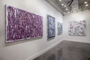 Stapleford’s portfolio consists entirely of vivid abstracts, many in patterns and blues reminiscent of the prettiest preppy plaid shirts. He creates daily from his home studio in Atlanta, via an inspirational drinking in of the city’s constant energy and motion. One can plainly see the effects in the vibrant fluidity of his brushstrokes, as actual brush movements themselves are practically visible when viewing Stapleford’s astounding pieces. Think the rigorous physicality of Jackson Pollock’s work, with a color palette much closer to a later period Henri Matisse.